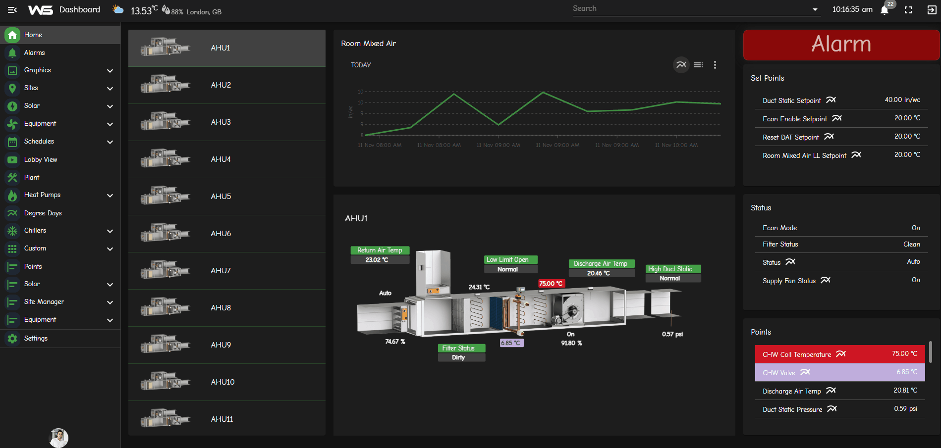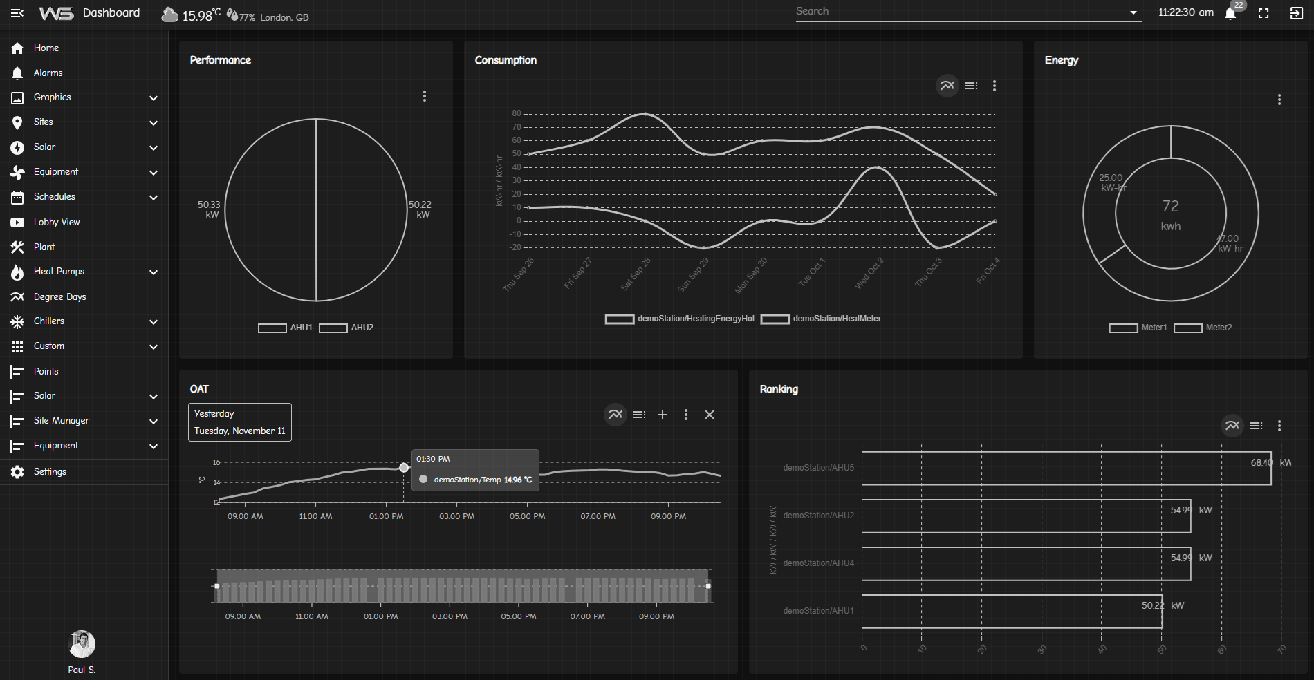 N4 Analytics - if you have created station analytics using algorithms and tagging, data can be plotted onto charts for analysis. Export data in CSV format to further analyze data.