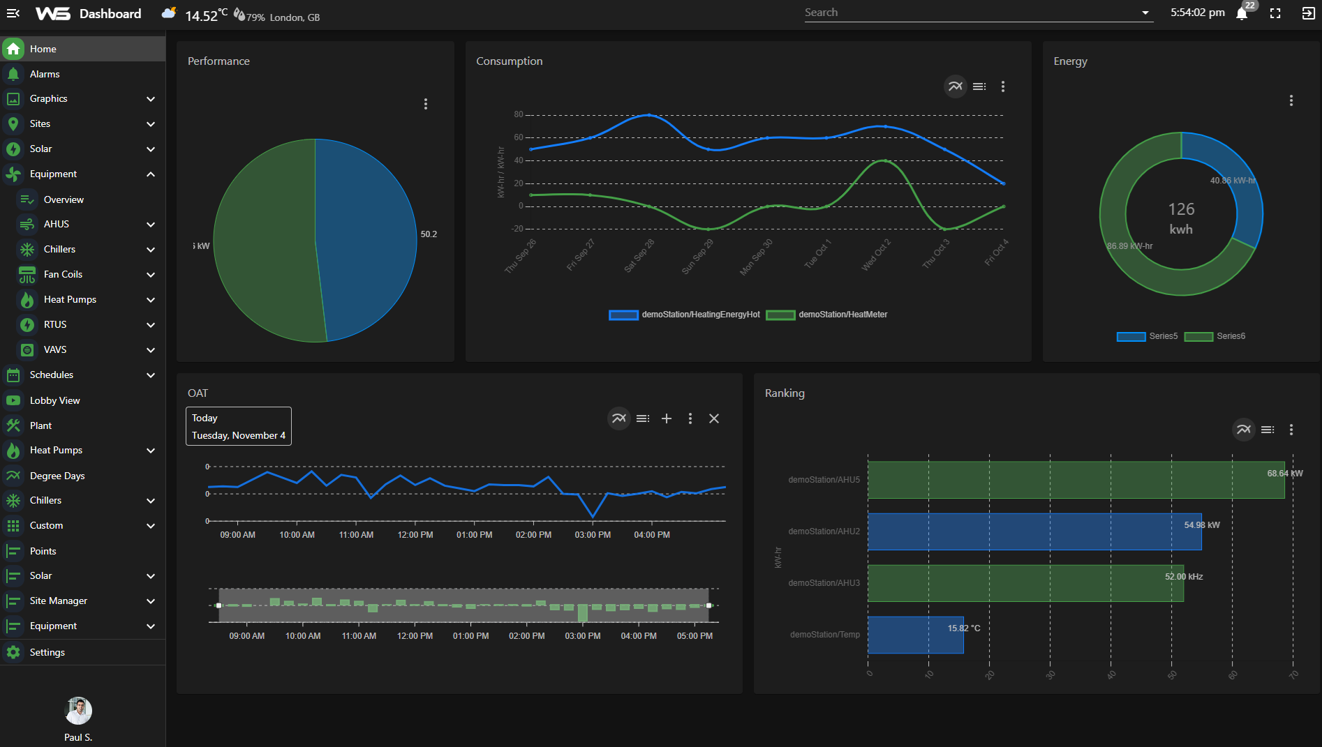 N4 Analytics - if you have created station analytics using algorithms and tagging, data can be plotted onto charts for analysis. Export data in CSV format to further analyze data.